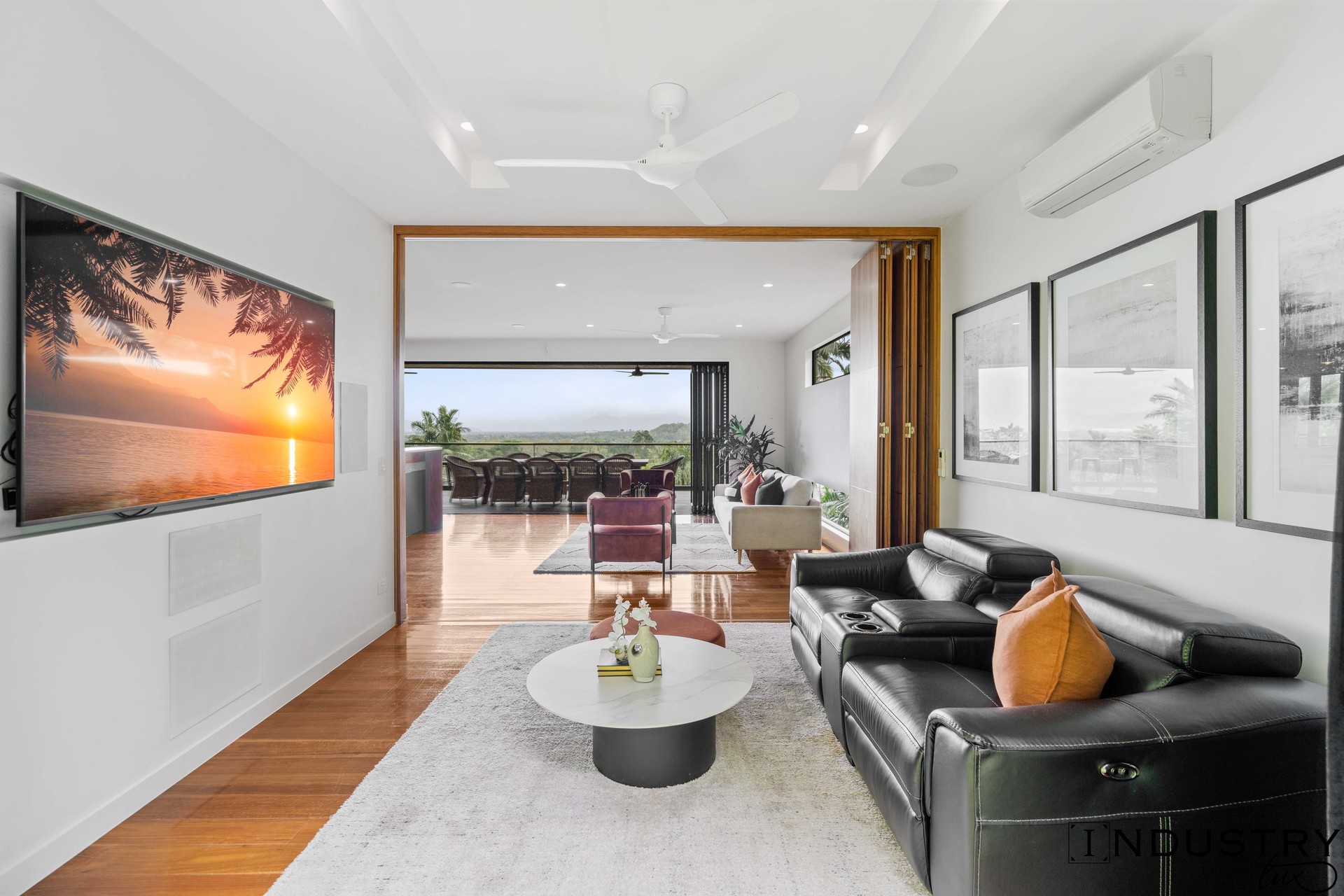 – Sprawling interiors with open plan living and dining plus media room