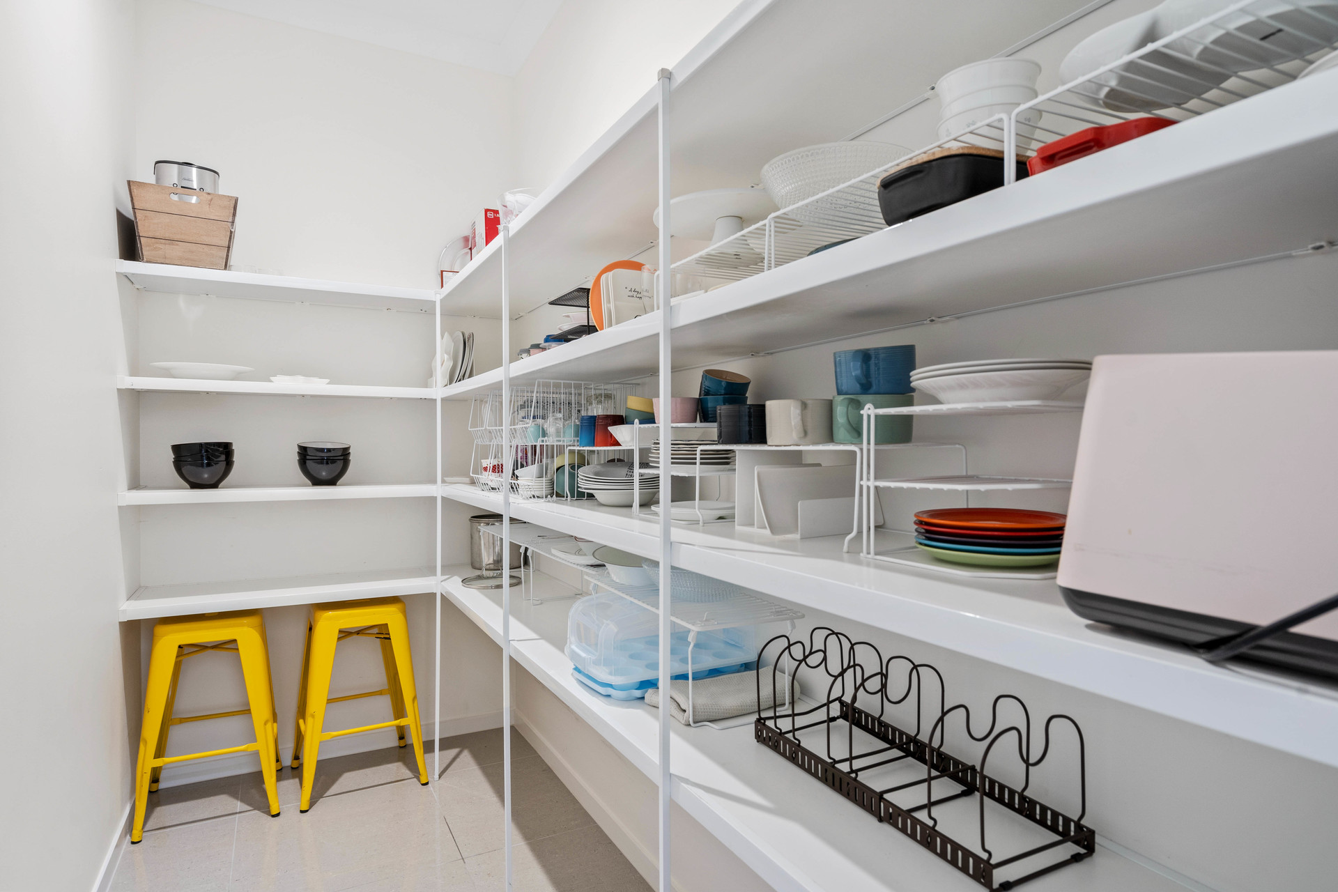 – Stainless steel appliances, gas cooking, stone bench tops, walk-in pantry/storeroom
