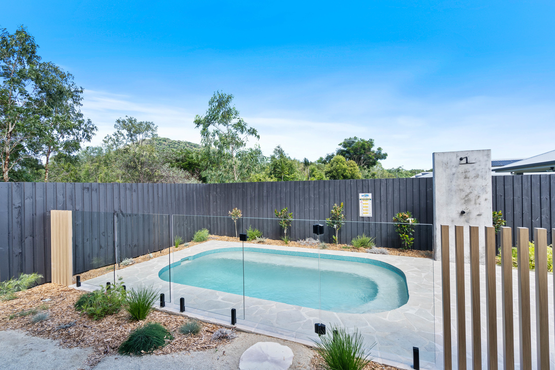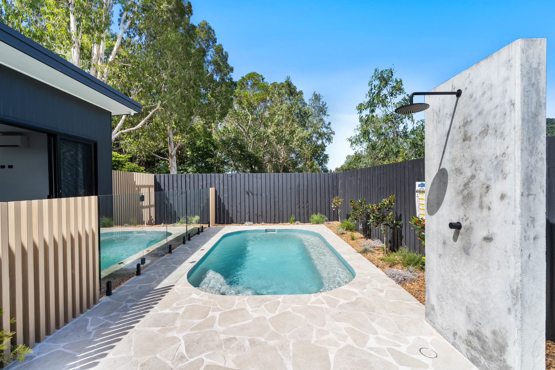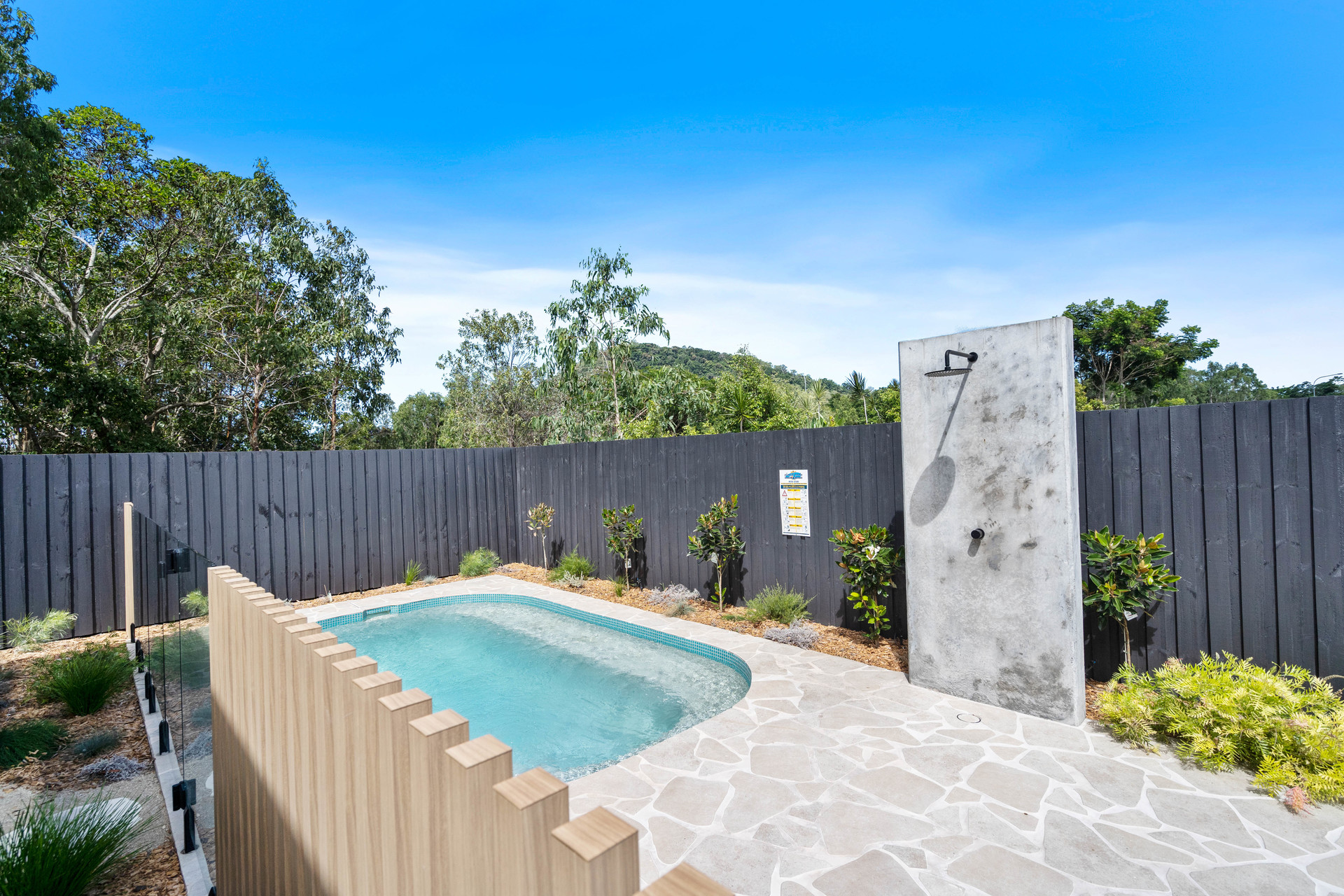 Outdoors, the landscaped backyard is private and low maintenance, highlighted by a stunning plunge pool and outdoor shower, creating a resort style feel without the upkeep. The rear of the home enjoys leafy outlooks across Moore Gully’s forested landscape, one of the estate’s most sought after features. With no rear neighbours, you’ll continue to enjoy a peaceful, private setting and the quiet that makes this location so special.