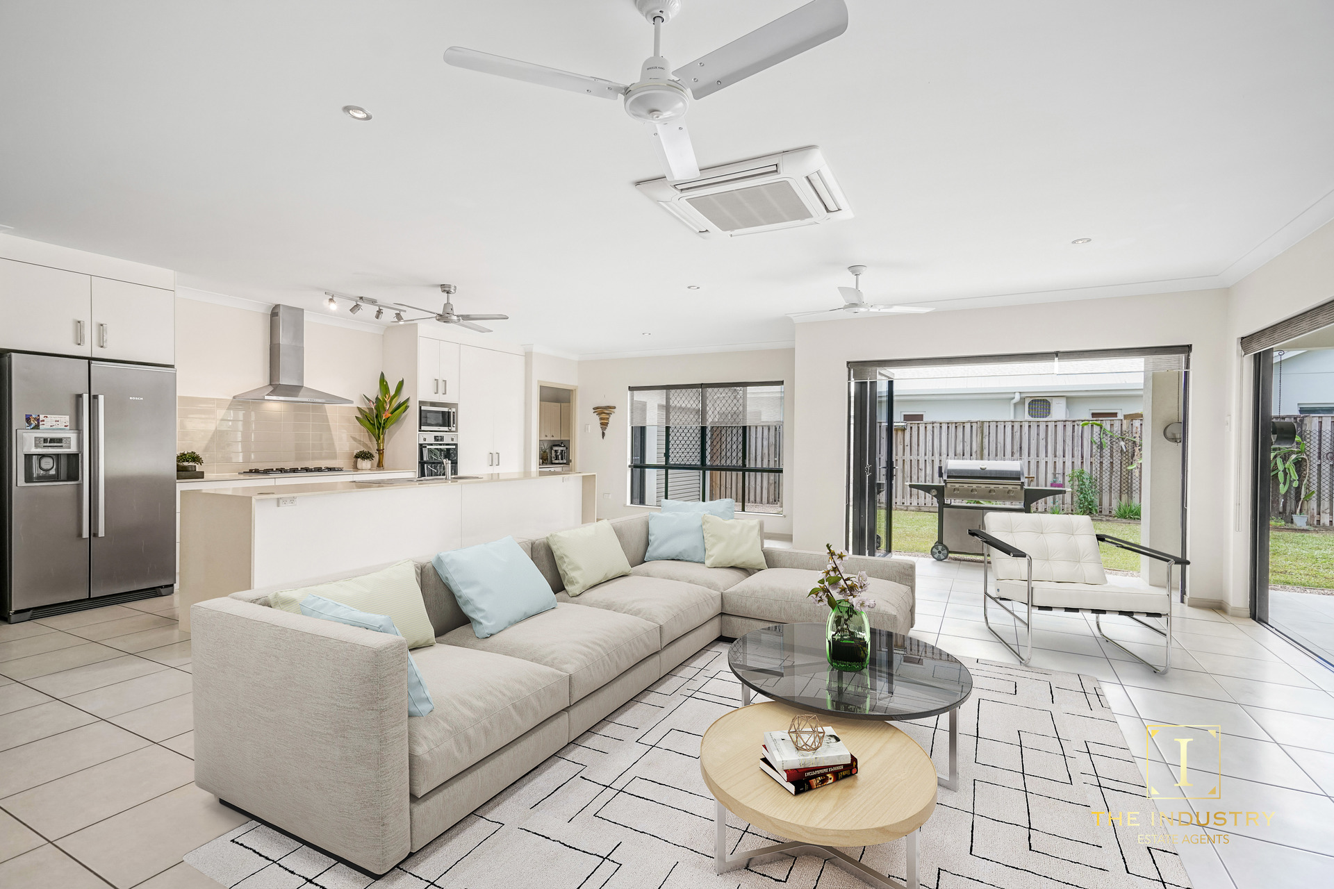– Large open plan design, quality kitchen with stainless steel appliances, stone bench tops